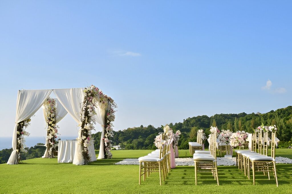 An open-air celebration designed with stylish chairs, floral décor, and modular stage setups. Our team ensured seamless coordination and timely delivery for a flawless experience.